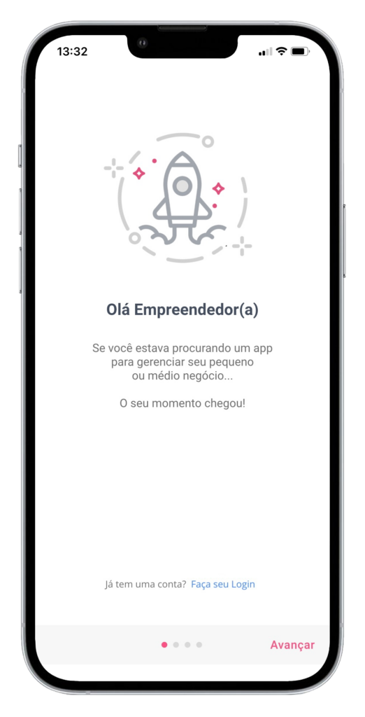 Ao iniciar o app pela primeira vez, utilize a opção: Faça seu Login